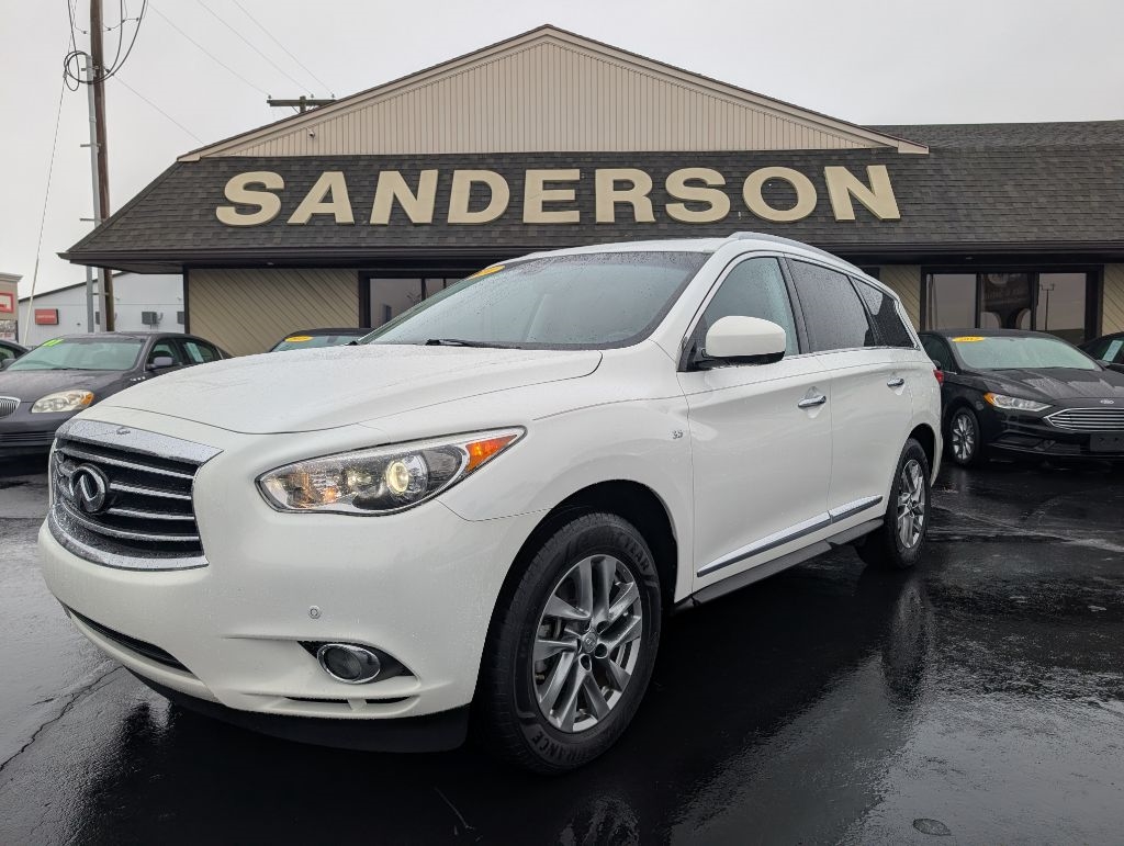 ALL WHEEL DRIVE with the Premium Plus package, 18 inch wheels, heated leather seats, heated steering wheel, moonroof, navigation, BOSE CD with satellite radio, Bluetooth, 3rd row seating, 360 camera, keyless entry with remote start, power seats, power hatch, and more. This Infiniti has been serviced and detailed in our shop. Sanderson Auto Sales has a one price policy. We take the hassle of haggling away by advertising our best price up front. Also, we will never try to sneak in a Documentation Fee or any other type of bogus charge to the final paperwork. Please keep this in mind when shopping for your next vehicle.