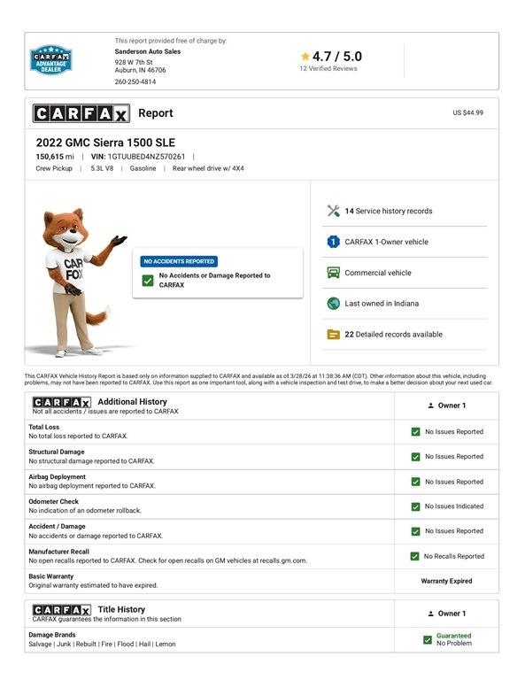 Visit Sanderson Auto Sales to shop our great deals. You can contact us or call 260-925-3945 to schedule your test drive today.