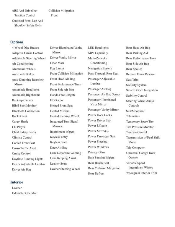 Vehicle Options: