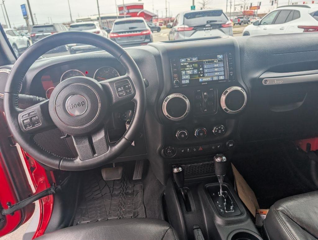 UNLIMITED SAHARA 4x4 with a painted hardtop, automatic transmission, heated leather seats, navigation, Alpine CD with satellite radio, Bluetooth, keyless entry with remote start, 18 inch wheels, and more. This Jeep has been serviced in our shop, professionally detailed, and is ready to go! Sanderson Auto Sales has a one price policy. We take the hassle of haggling away by advertising our best price up front. Also, we will never try to sneak in a Documentation Fee or any other type of bogus charge to the final paperwork. Please keep this in mind when shopping for your next vehicle.