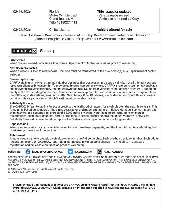 FRONT WHEEL DRIVE TOURING equipped with a moonroof, heated leather seats, 17 inch wheels, blind spot detection, lane departure warning, adapative cruise, BOSE radio, Bluetooth, Apple Carplay, Android Auto, backup camera, power seat, power hatch, and more. This Mazda has been serviced and detailed in our shop and is 100% ready to go. Sanderson Auto Sales has a one price policy. We take the hassle of haggling away by advertising our best price up front. Also, we will never try to sneak in a Documentation Fee or any other type of bogus charge to the final paperwork. Please keep this in mind when shopping for your next vehicle.