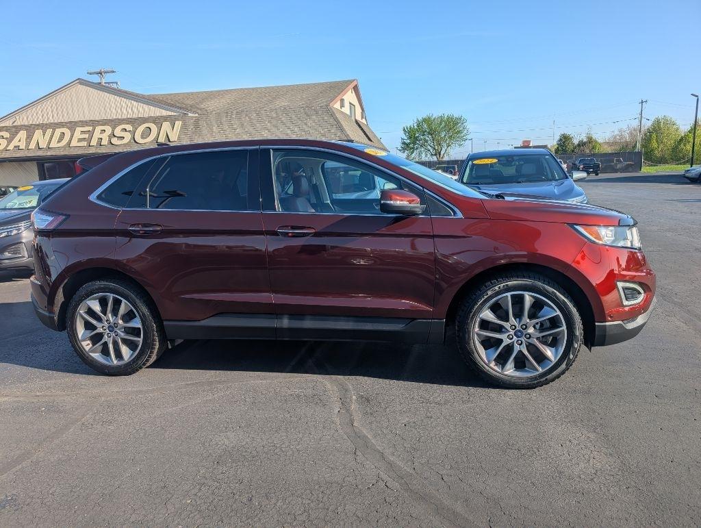 ALL WHEEL DRIVE TITANIUM with the 2.0L Ecoboost, heated and cooled leather seats, heated rear seats, heated steering wheel, panoramic moonroof, navigation, 20 inch wheels, front and rear camera, SONY audio with satellite radio, Bluetooth, lane departure warning, blind spot alert, hands free power hatch, power seats, and more. This Edge has been serviced and detailed in our shop. Sanderson Auto Sales has a one price policy. We take the hassle of haggling away by advertising our best price up front. Also, we will never try to sneak in a Documentation Fee or any other type of bogus charge to the final paperwork. Please keep this in mind when shopping for your next vehicle.