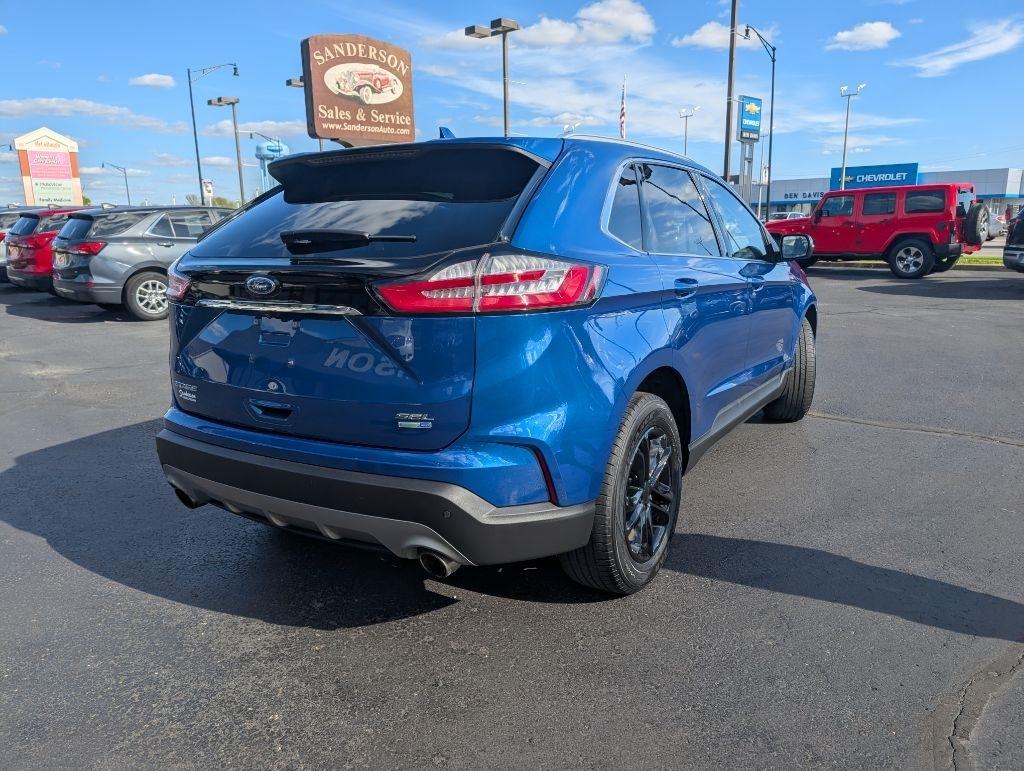 ALL WHEEL DRIVE SEL with the 2.0L Ecoboost, heated leather seats, 18 inch gloss black wheels, backup camera, power seats, lane keep, blind spot monitor, Fordpass Connect, and more. This Edge has been serviced and detailed in our shop. Sanderson Auto Sales has a one price policy. We take the hassle of haggling away by advertising our best price up front. Also, we will never try to sneak in a Documentation Fee or any other type of bogus charge to the final paperwork. Please keep this in mind when shopping for your next vehicle.