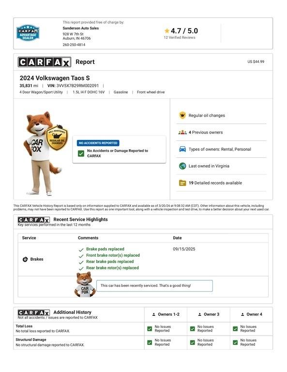 FRONT WHEEL DRIVE S with the 1.5L turbo, adaptive cruise, travel assist, heated steering wheel, 17 inch wheels, backup camera, keyless entry, Bluetooth, Apple Carplay, Android Auto, and more. This VW has been serviced in our shop, professionally detailed, and is ready to go! Sanderson Auto Sales has a one price policy. We take the hassle of haggling away by advertising our best price up front. Also, we will never try to sneak in a Documentation Fee or any other type of bogus charge to the final paperwork. Please keep this in mind when shopping for your next vehicle.