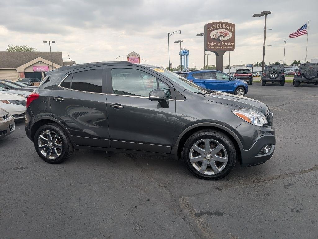 FRONT WHEEL DRIVE LEATHER with the 1.4L turbo, heated leather seats, moonroof, navigation, BRAND NEW TIRES on 18 inch wheels, Bluetooth with satellite radio, backup camera, keyless entry with remote start, power seats, and more. This Encore has been serviced and detailed in our shop. Sanderson Auto Sales has a one price policy. We take the hassle of haggling away by advertising our best price up front. Also, we will never try to sneak in a Documentation Fee or any other type of bogus charge to the final paperwork. Please keep this in mind when shopping for your next vehicle.