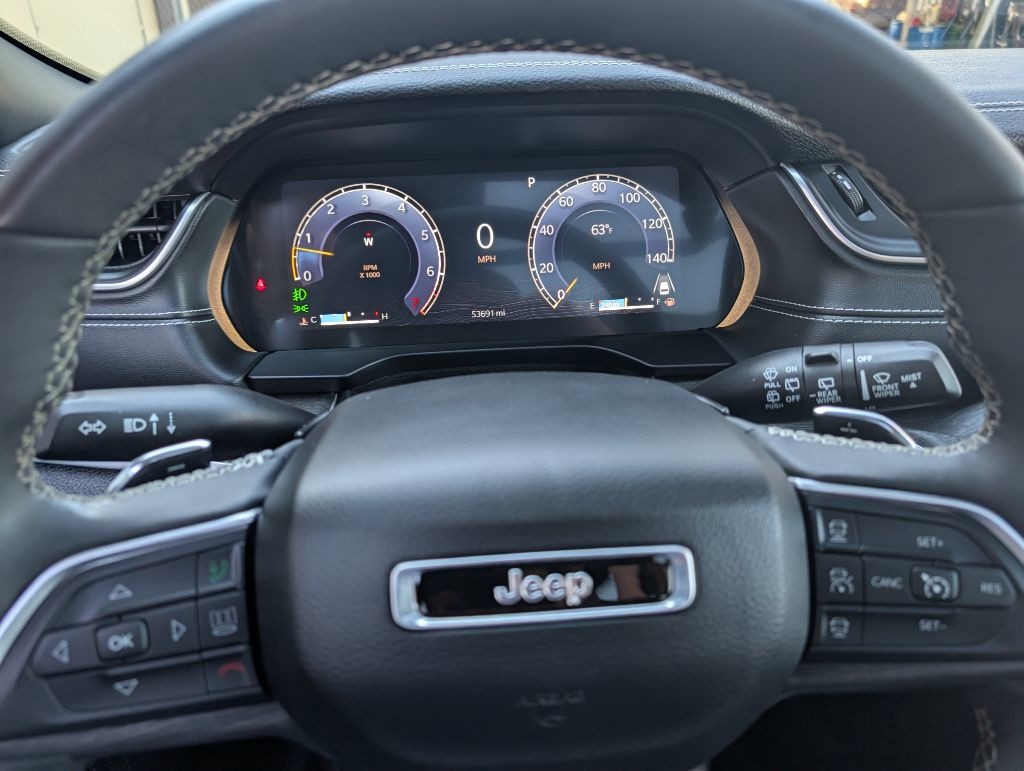 ALL WHEEL DRIVE L LIMITED with the 3.6L V6, heated and cooled leather seats, panoramic moonroof, navigation, 20 inch wheels, heated steering wheel, heated rear bucket seats, 3rd row power-folding seat, 360 camera, Fam Cam, Luxury Tech Group II, adaptive cruise control, active lane-management system, forward collision warning, blind spot detection, cross path detection, keyless entry with remote start, power seats, power hatch, Apple Carplay, Android Auto, Jeep Connect, satellite radio, Bluetooth, and more. This Jeep has been serviced and detailed in our shop. Sanderson Auto Sales has a one price policy. We take the hassle of haggling away by advertising our best price up front. Also, we will never try to sneak in a Documentation Fee or any other type of bogus charge to the final paperwork. Please keep this in mind when shopping for your next vehicle.