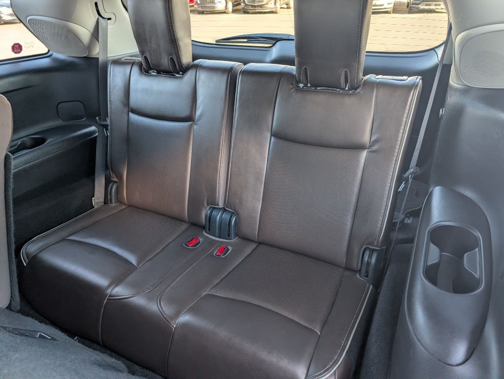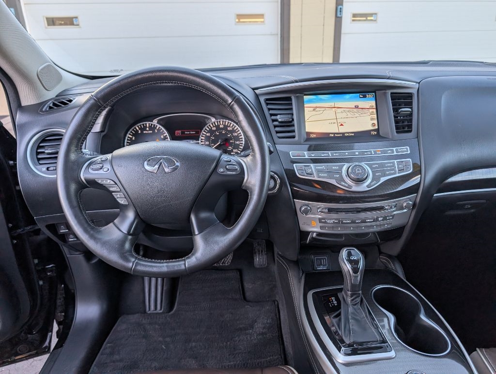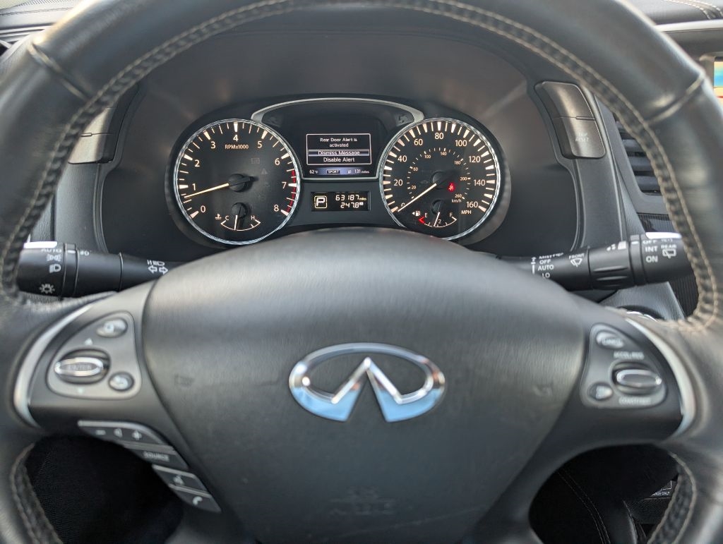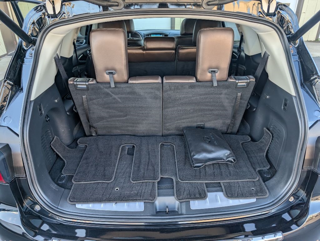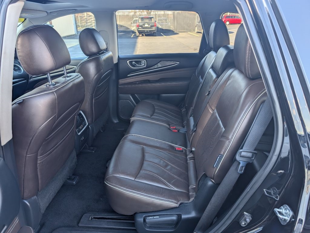 ALL WHEEL DRIVE SIGNATURE EDITION with the Essential package, 18 inch wheels, heated leather seats, heated steering wheel, moonroof, navigation, BOSE CD with satellite radio, Bluetooth, 3rd row seating, 360 camera, blind spot warning, lane keep, keyless entry with remote start, power seats, power hatch, and more. This Infiniti has been serviced and detailed in our shop. Sanderson Auto Sales has a one price policy. We take the hassle of haggling away by advertising our best price up front. Also, we will never try to sneak in a Documentation Fee or any other type of bogus charge to the final paperwork. Please keep this in mind when shopping for your next vehicle.